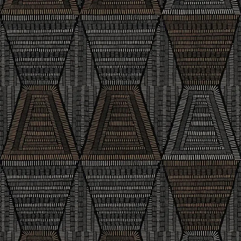 Wallpaper ethnic African tribal black terracotta by Casamance, Mirage collection. Washable vinyl quality, size: 53 cm x 10 m.