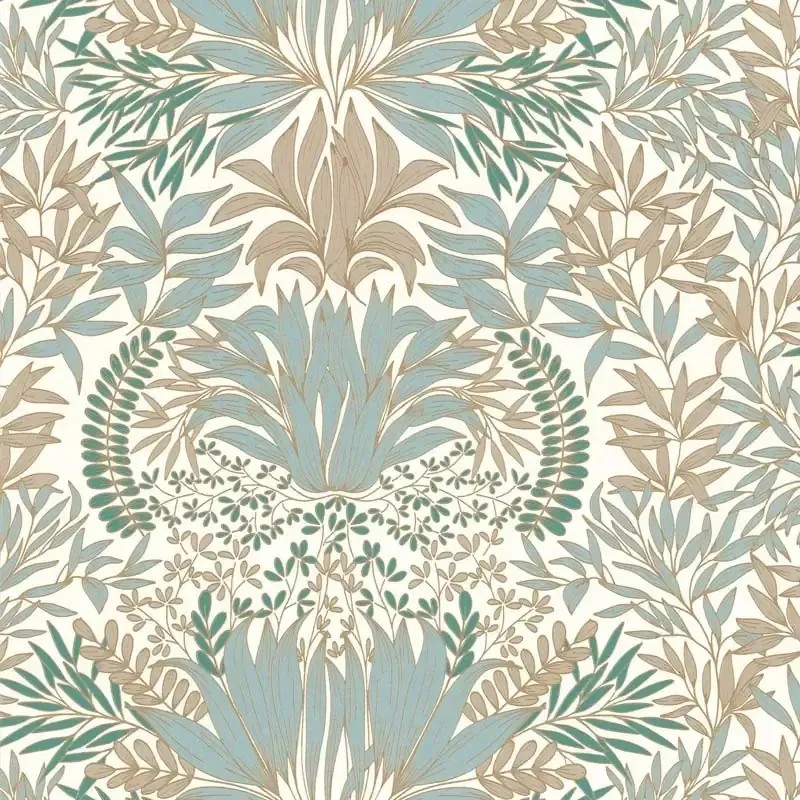 Wallpaper ornamental Art Nouveau floral green by Casamance, Square Jasmin collection. Washable vinyl quality, size: 70 cm x 10 m.