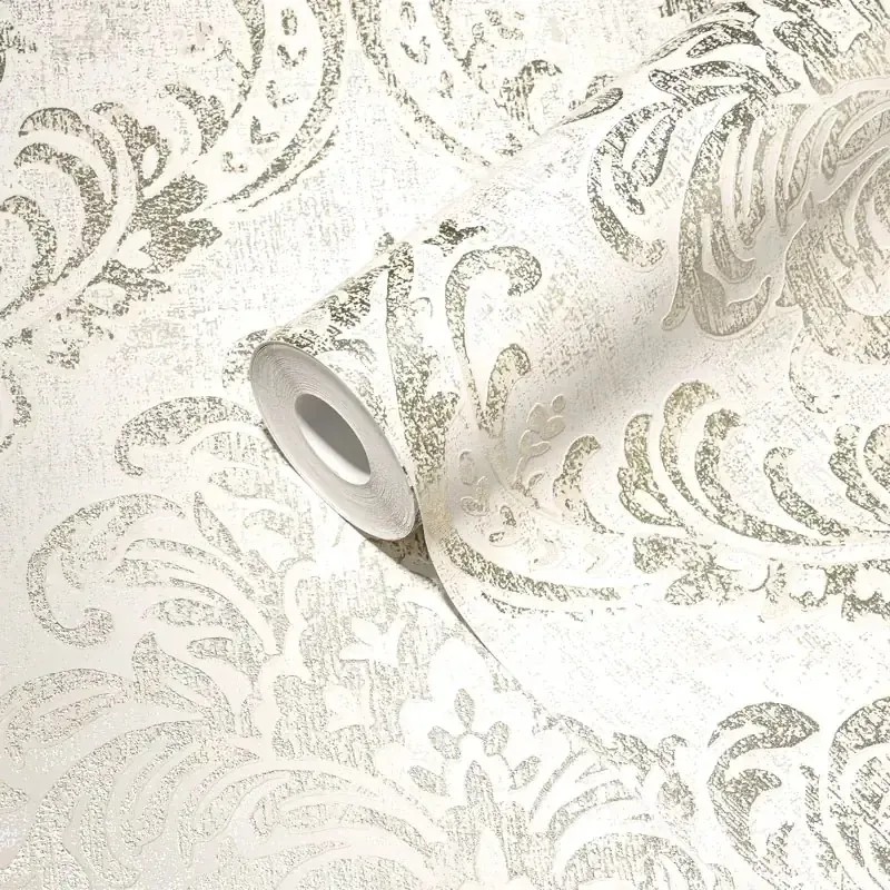 Design intended for cozy and contemporary environments.. Wallpaper with white and gold damask style As Creation Metropolitan Stories 391123.