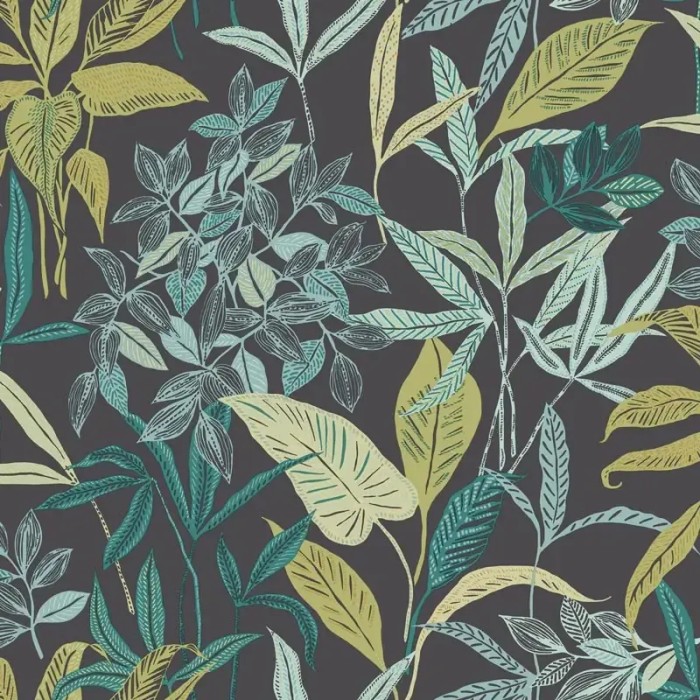 Moss green floral leaf wallpaper. Caselio Green & Co, non-woven washable wallpaper. Size: 53 cm x 10 m