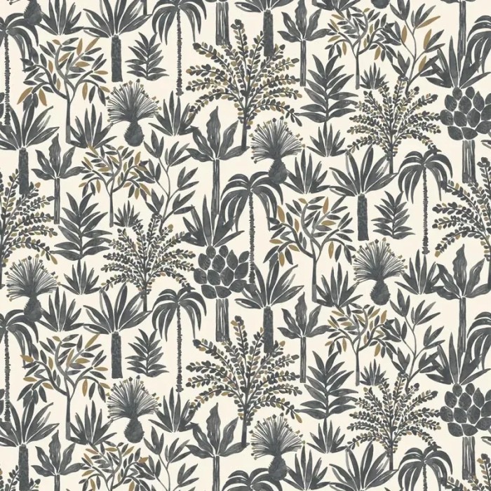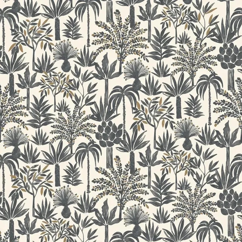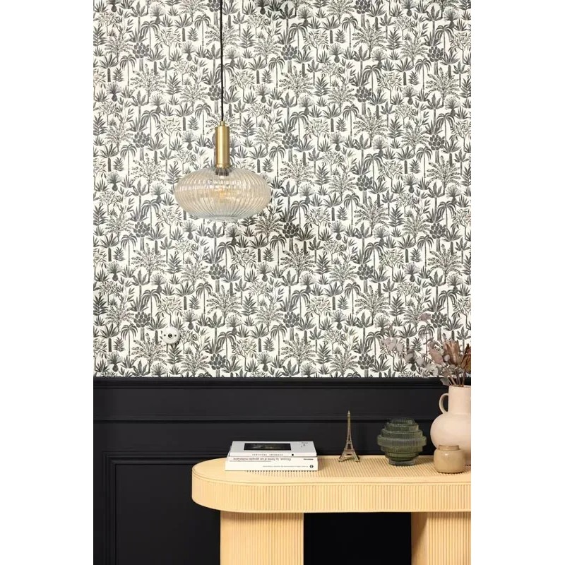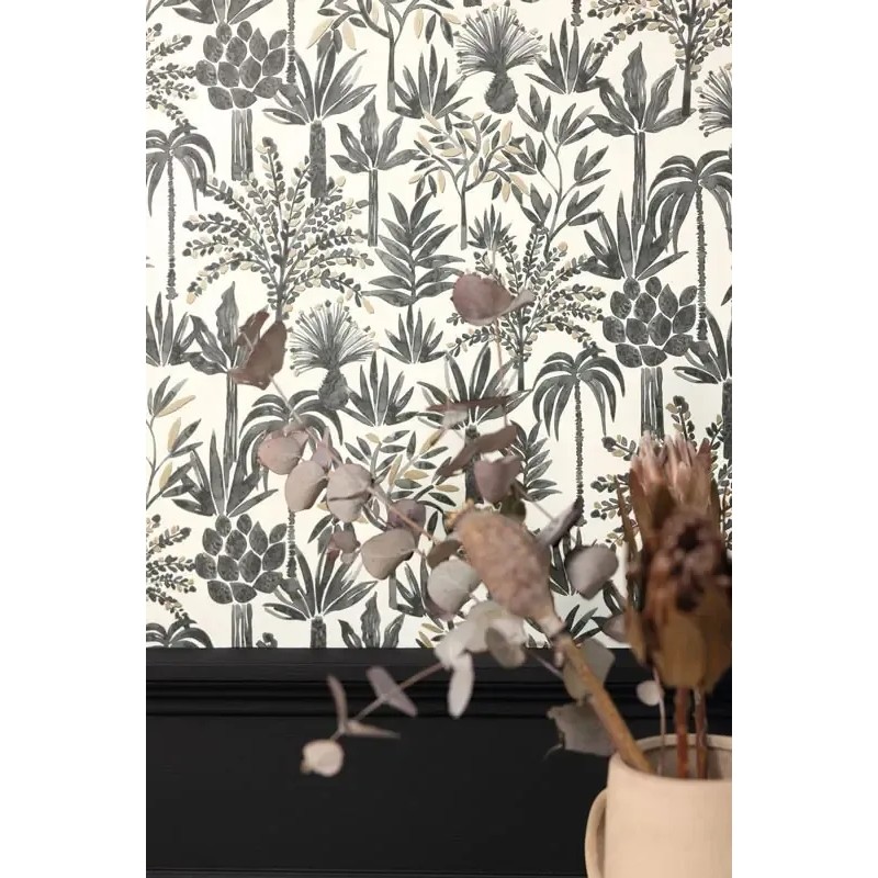 Minimalist floral wallpaper black and white. Caselio Moonlight, non-woven washable wallpaper. Size: 53 cm x 10 m
