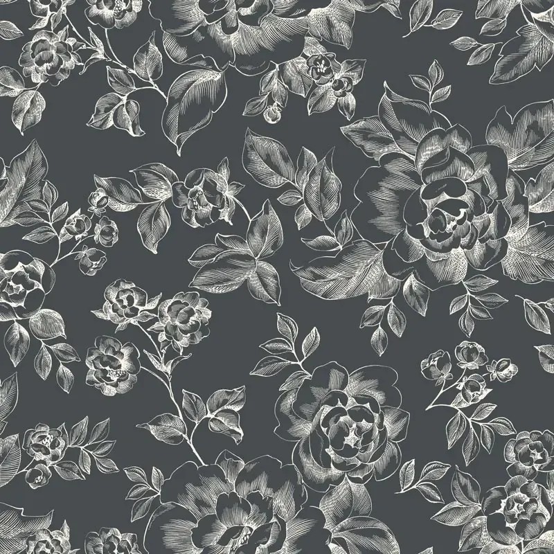 Black wildflower wallpaper. Caselio Moonlight, non-woven washable wallpaper. Size: 53 cm x 10 m