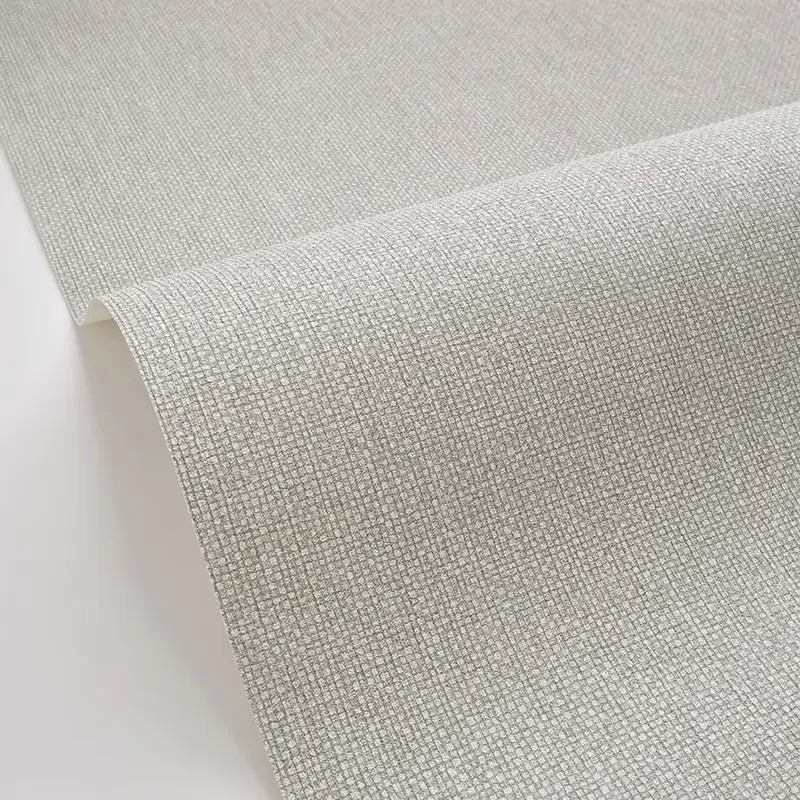 Pearl grey fabric look wallpaper. Caselio Damier, non-woven washable wallpaper. Size: 53 cm x 10 m