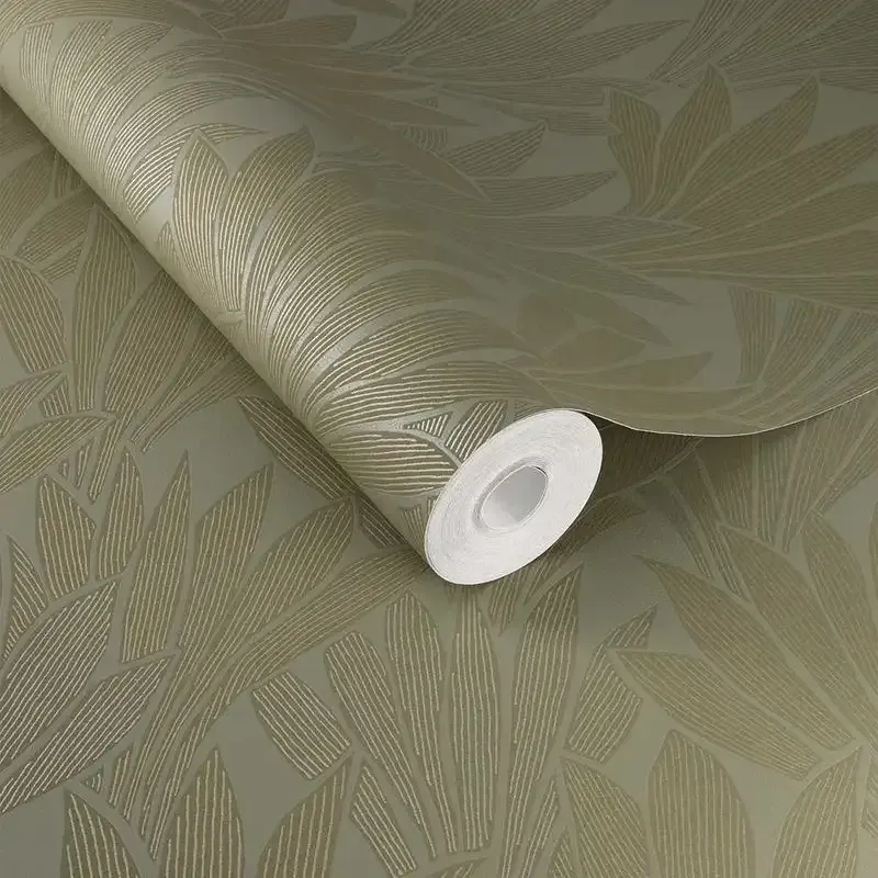 Modern metallic olive green-gold minimalist leaf wallpaper