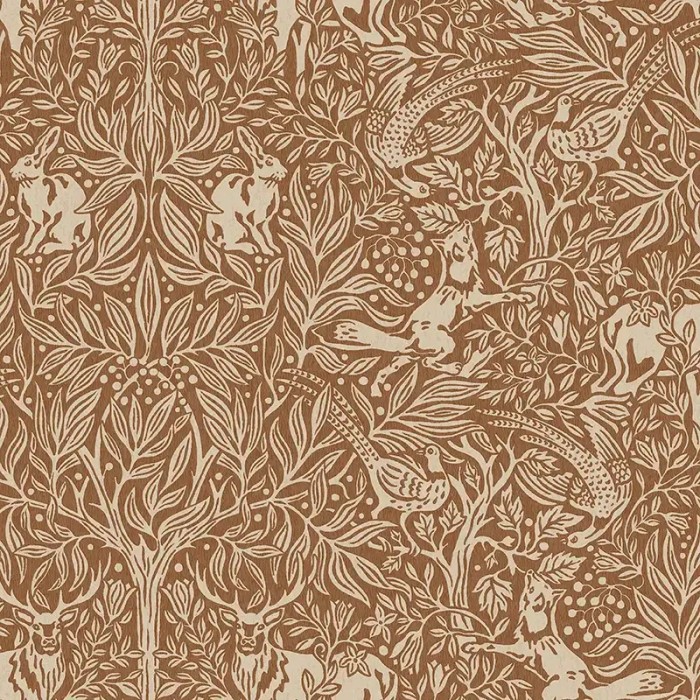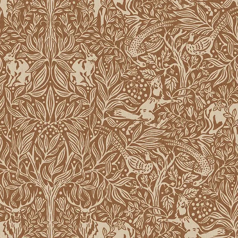 Wallpaper Scandinavian forest fauna nature in brown and beige
