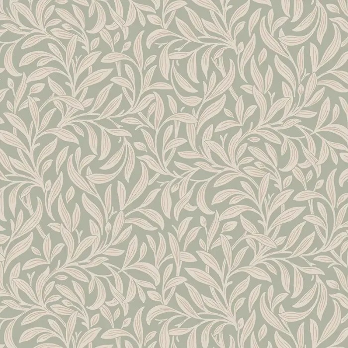 Wallpaper arts and crafts style dense leaves in pastel green and beige