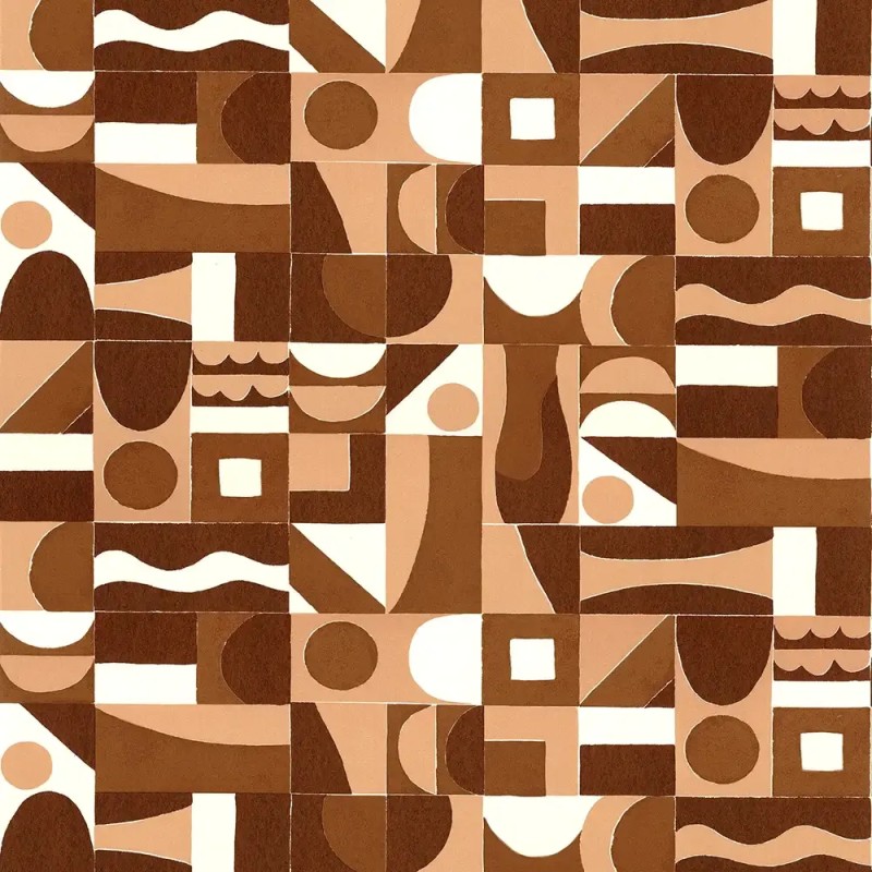 Wallpaper geometric composition light brown by Casamance, Bord du Nil collection. Washable vinyl quality, size: 106 cm x 10 m.