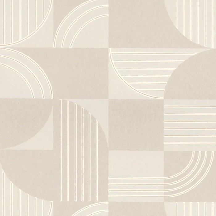 Wallpaper Art Deco beige with geometric semicircles by Casamance, Faubourg Des Lumières collection. Washable vinyl quality, size: 68 cm x 10 m.