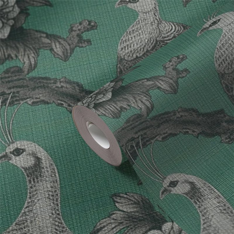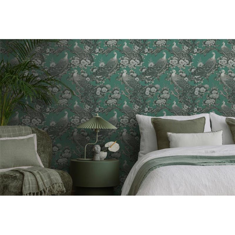 Discover the Wallpaper Eclipse, an elegant and sophisticated option for your home. Its floral style is highlighted by an elegant floral illustration with peacocks, bringing a touch of nature and distinction to any space. The gray and green colors combine harmoniously, creating a calm and relaxing atmosphere.
