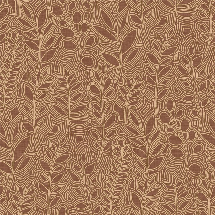 Wallpaper linen brown with embroidered leaves by Casamance, Palmadora collection. Washable vinyl quality, size: 70 cm x 10 m.
