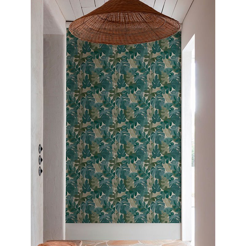 Floral monstera and ficus leaves multicolor wallpaper. Add charm perfect for a feature wall. Perfect for modern and timeless interiors.