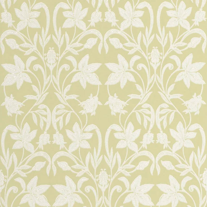 Beige and white floral wallpaper with classic and elegant inspiration. Warm for a serene bedroom.
