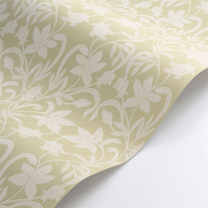 English-style green wallpaper with classic floral print. Classic for a sophisticated dining room.