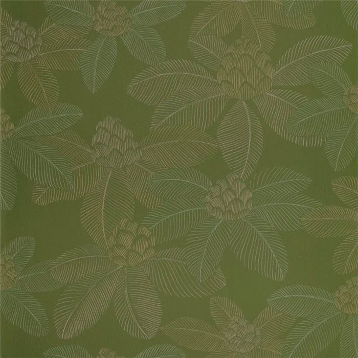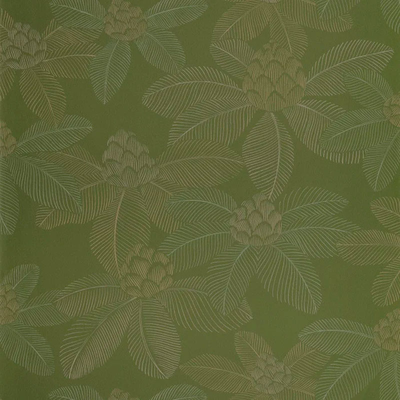 Lotus flower wallpaper with English green background. Caselio Art of Botany, non-woven washable wallpaper. Size: 53 cm x 10 m