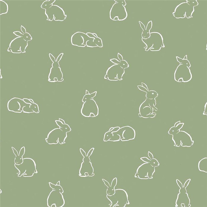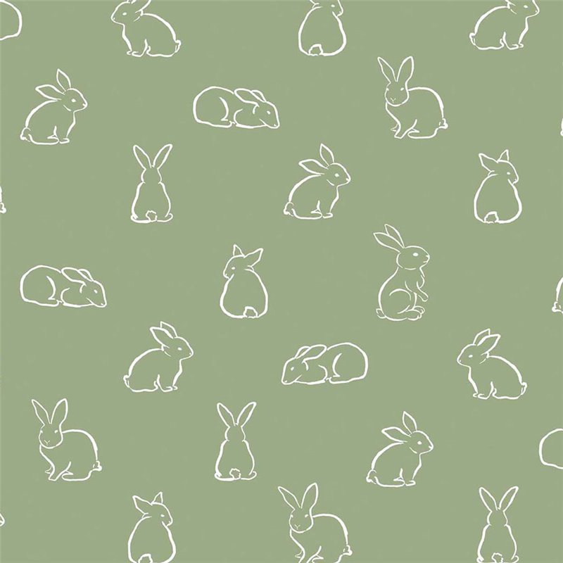 Wallpaper children's wallpaper with bunnies outlined in sage green