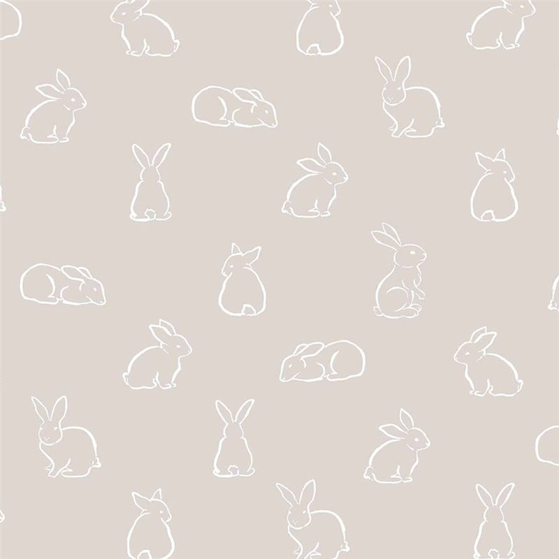 Wallpaper children's wallpaper with bunnies outlined in light taupe gray