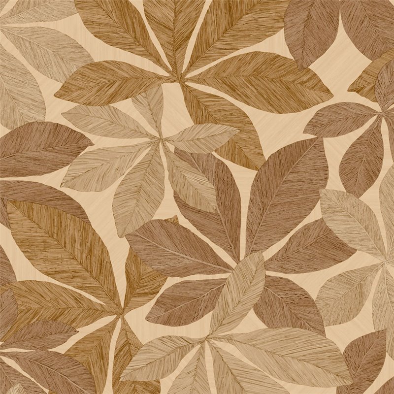 Floral wood-look wallpaper in brown