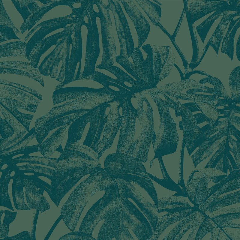 The wallpaper MATA Vert Taiga from the Casadeco RIO collection reinterprets monstera leaves as cut-out silhouettes on a deep taiga green. This more intense version adds character and a sense of immersion in the jungle, perfect for an accent wall in the living room, dining room, or behind the headboard. The contrast between the saturated background and the plant forms creates a striking graphic that balances well with light furniture and natural fibers.