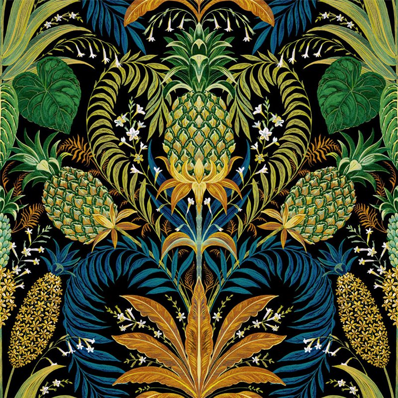 Tropical pineapple-and-flower wallpaper in black matte