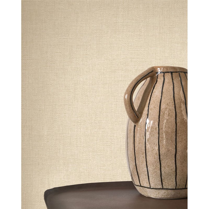 Wallpaper Caractère by Casadeco in champagne beige, with a heathered-linen texture that adds light, softness and timeless elegance.