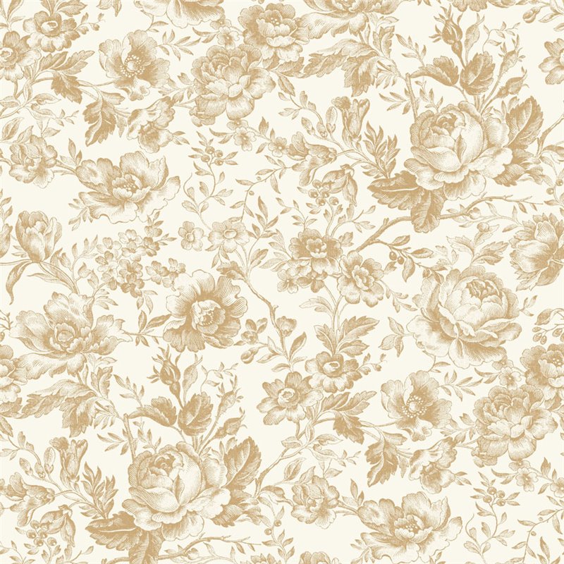 The wallpaper CÉLESTINE from Casadeco is inspired by the gardens of English country houses through an elegant bouquet of tea roses. In this camel version, the design brings warmth and softness to the floral scene, creating cozy walls with a classic and refined air. The drawing, delicate and balanced, evokes the spirit of Toile de Jouy reinterpreted with contemporary sensitivity.