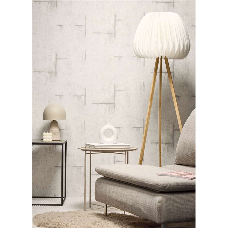 Contemporary grey concrete effect wallpaper for the living room, with a matte finish and a light texture that reinforce a modern and sober style.