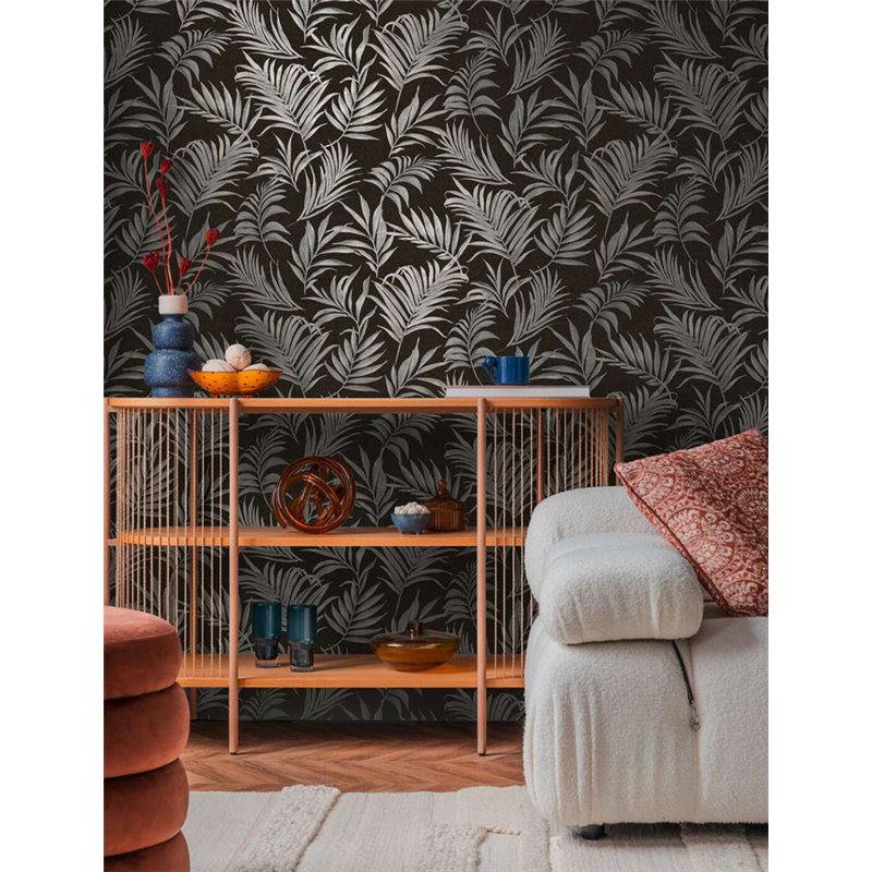Modern jungle wallpaper black silver