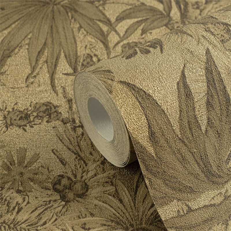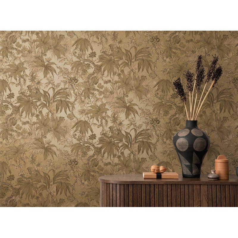 Jungle tropical colonial design in brown, a wallpaper designed for restaurants seeking a warm and sophisticated atmosphere.