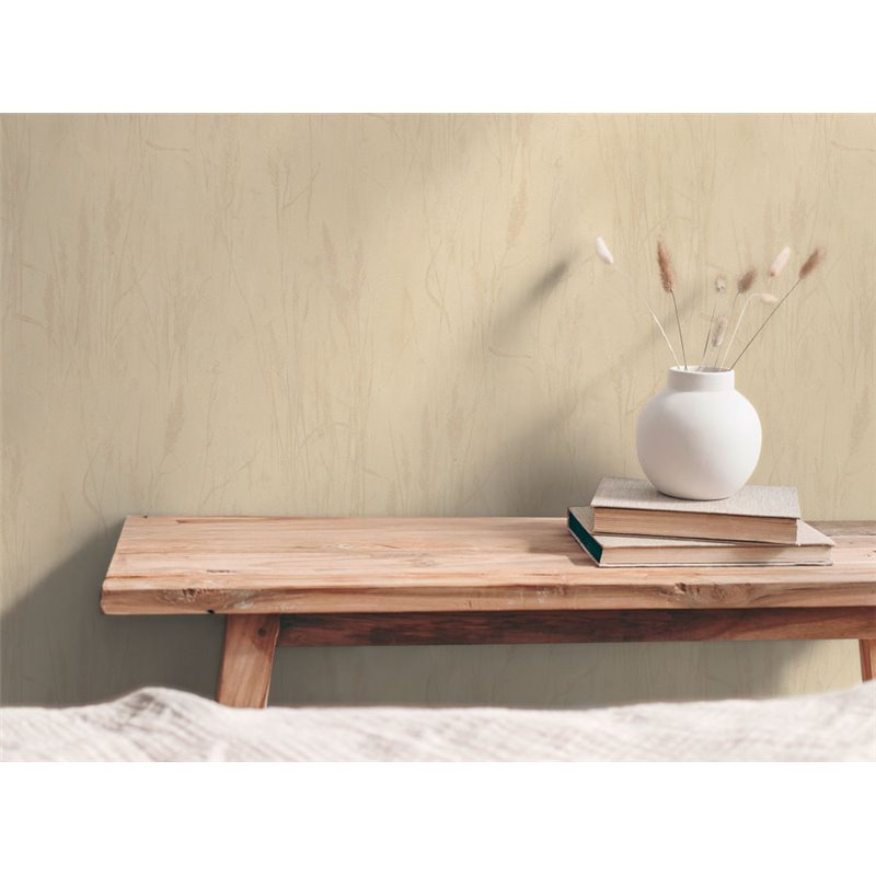 Scandinavian wildflower design in beige, a wallpaper suitable for the living room that adds warmth and a natural decorative feel. Non-woven wallpaper, roll size 53 cm x 10 m.