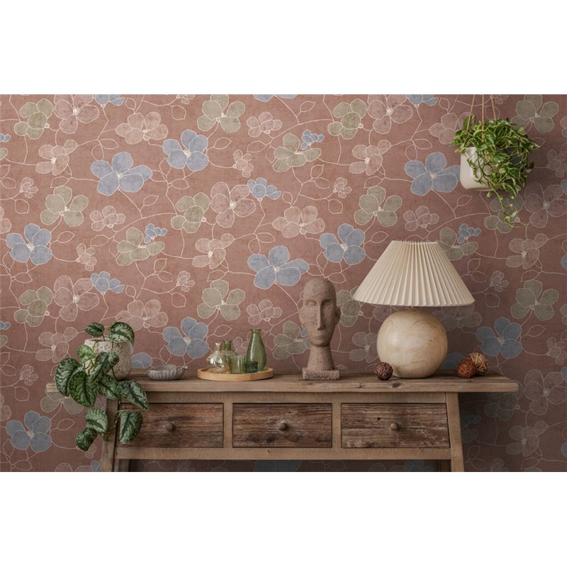Red accents within a Scandinavian minimalist floral pattern give this wallpaper personality, making it especially suitable for the bedroom.