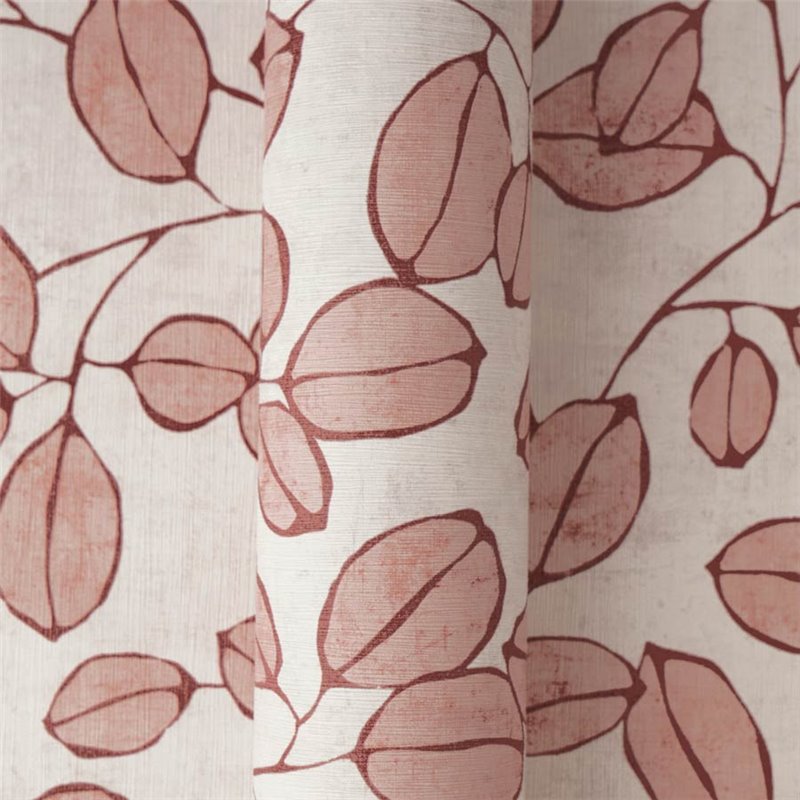 A pink Scandinavian leaf pattern adds delicacy and freshness, making this wallpaper a gentle decorative option.
