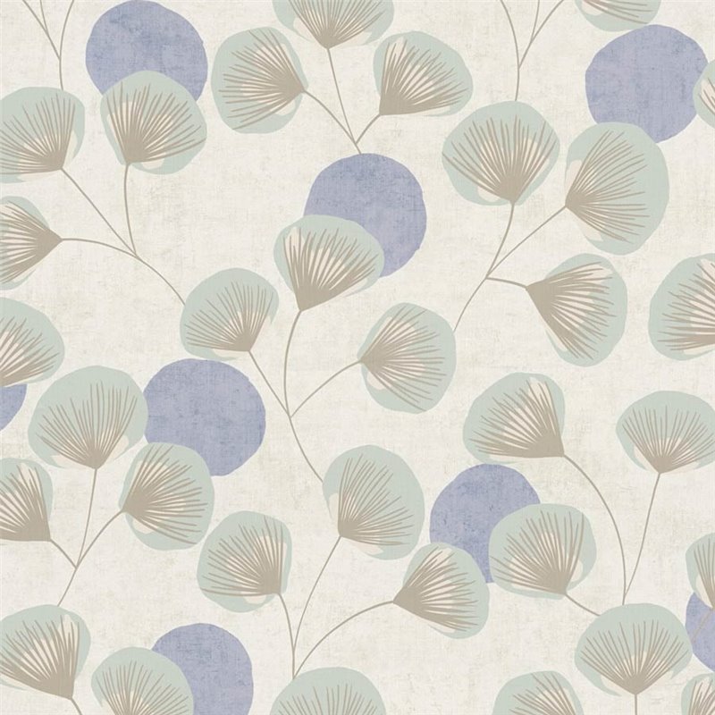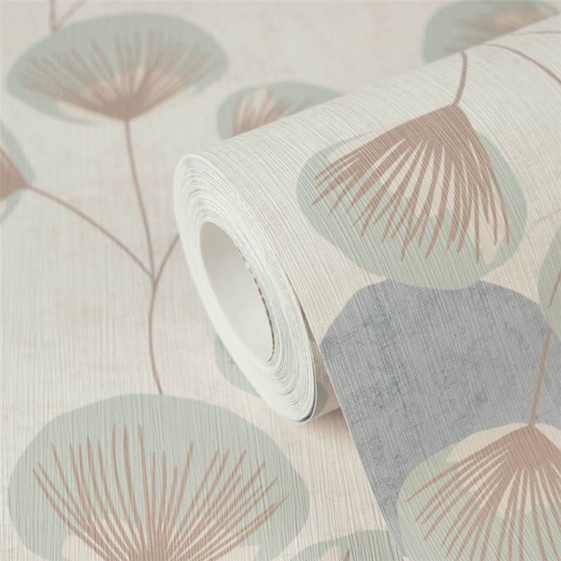 Pastel shades and a Scandinavian leaf design shape this wallpaper as a soft and light-filled option for the bedroom.