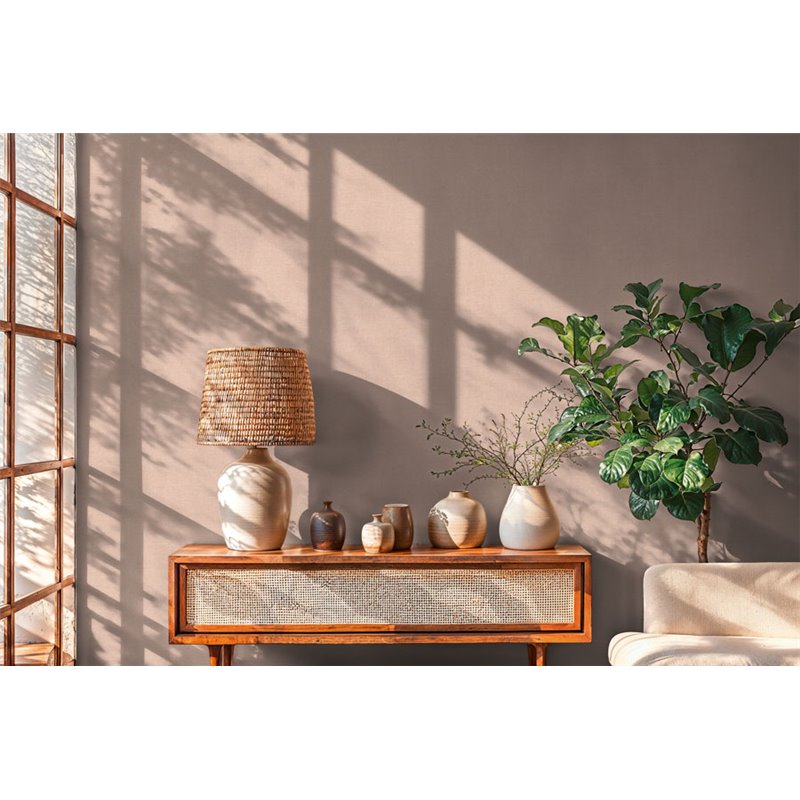 A soft nude pink shade with textured finish gives this wallpaper a gentle and elegant look, perfect for a refined entryway.