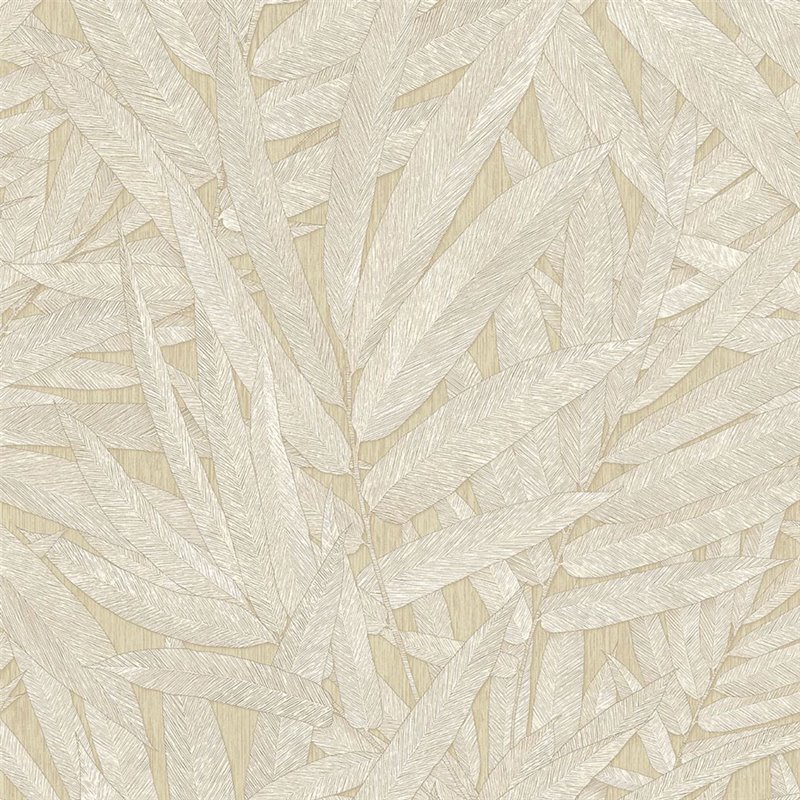 This elongated palm leaf wallpaper in beige brings natural charm and a subtle tropical touch that is easy to integrate.