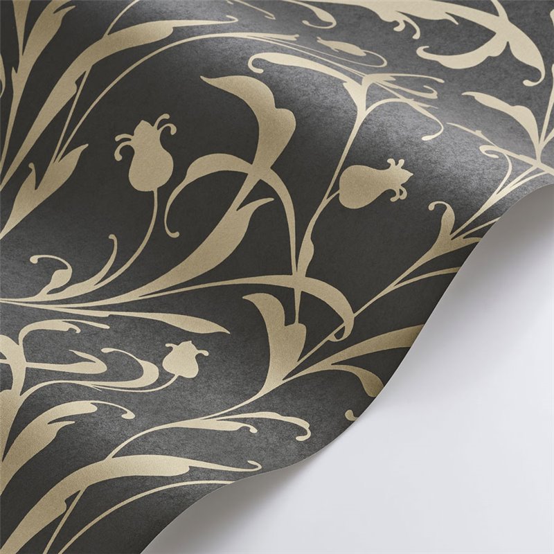 Floral scroll arabesque wallpaper black