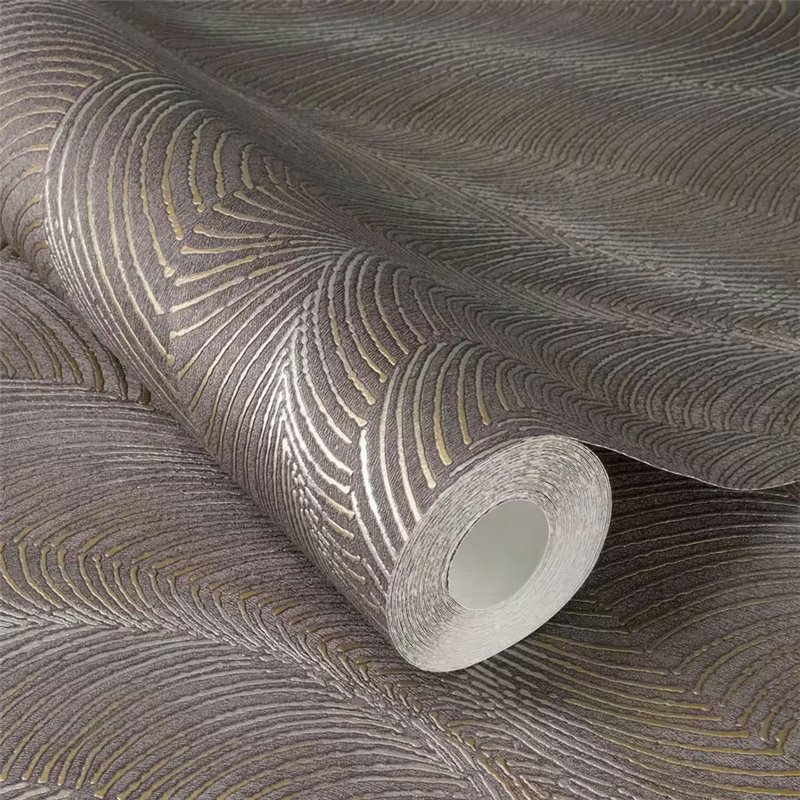 Interlaced wave design in metallic brown with a fluid look that breaks up plain walls. A wallpaper that adds movement without overwhelming the space