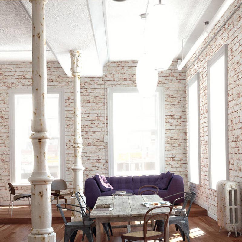 Papel pintado ladrillo blanco y rojo enlucido