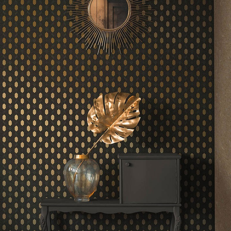 Papel pintado diseño étnico estilo moderno marrón con brillo, sofisticado y con carácter artesanal. Architects Paper Absolutely Chic, papel de pared calidad tejido no tejido lavable. Medidas: 53 cm x 10 metros