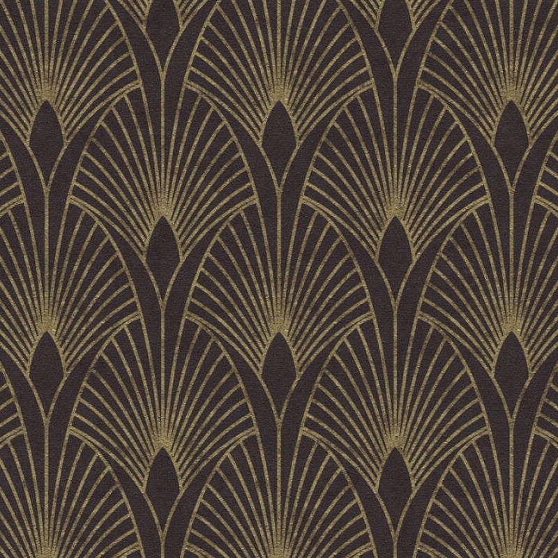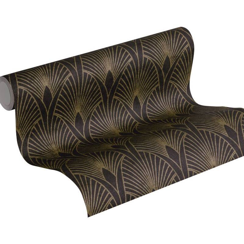 Papel pintado moderno art decó metalizado negro dorado. AS Creation - Nouveaux Murs 374273