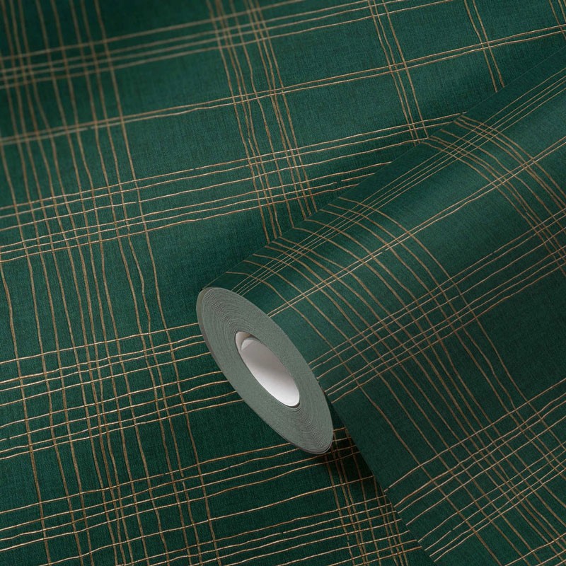 Papel Pintado verde cuadros metalizados. Ideal para lograr estilo moderno y diseño vanguardista. Papeldecor 221-1655