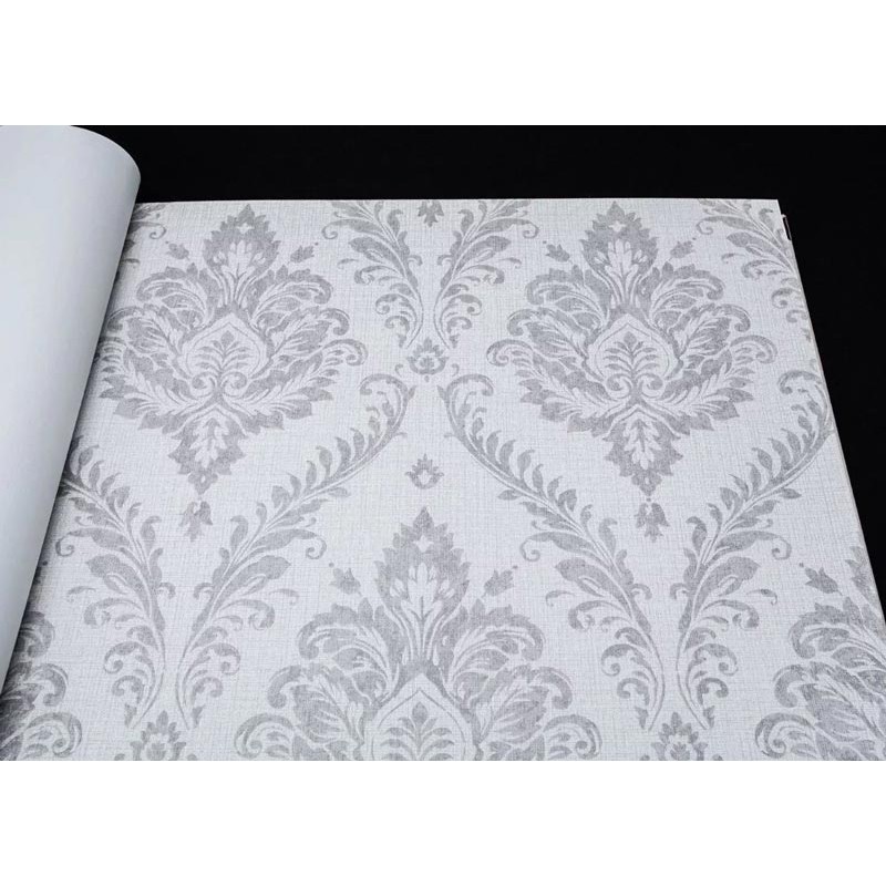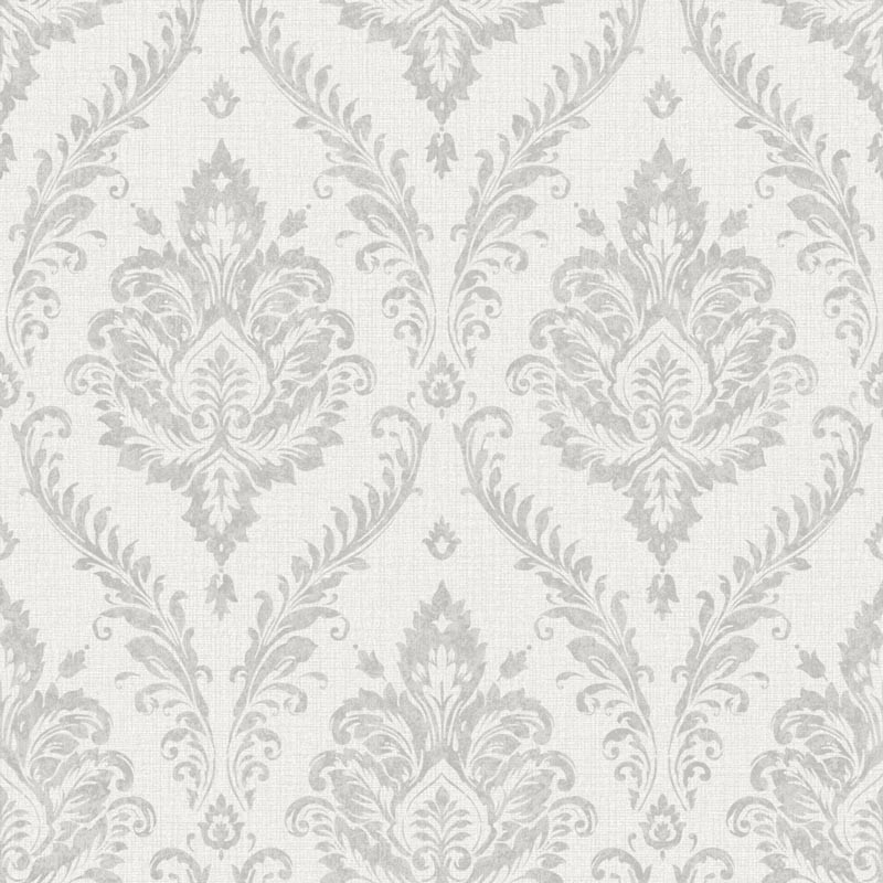 Papel pintado damasco adornos florales gris