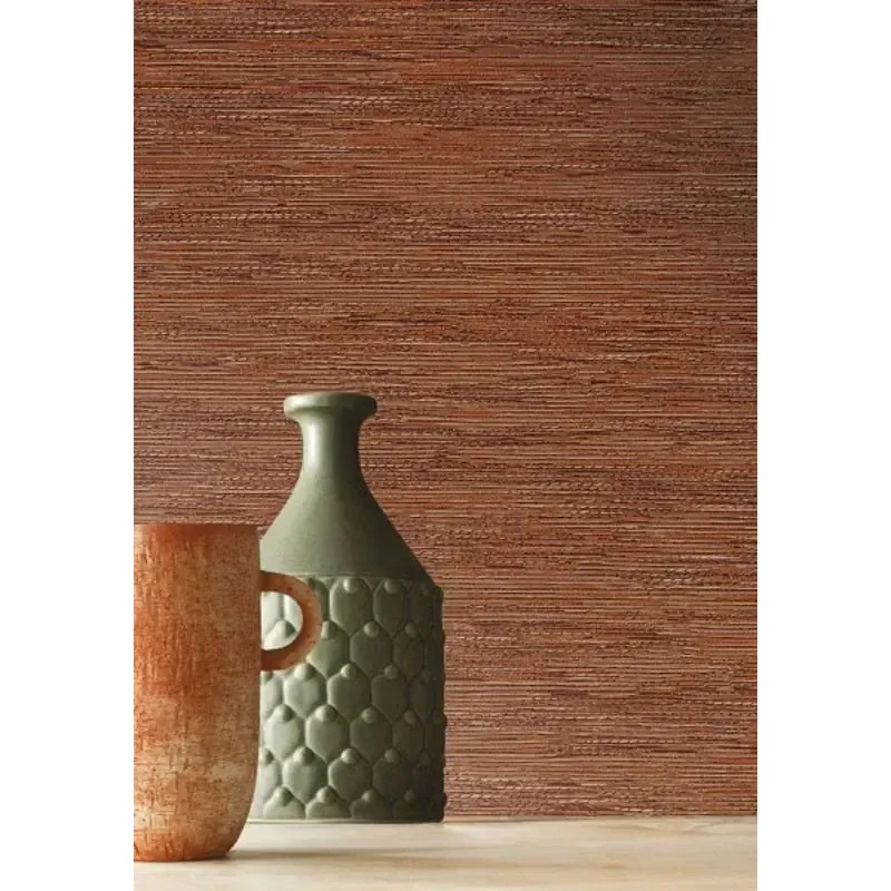 Papel pintado fibra natural, rafia marrón cálido