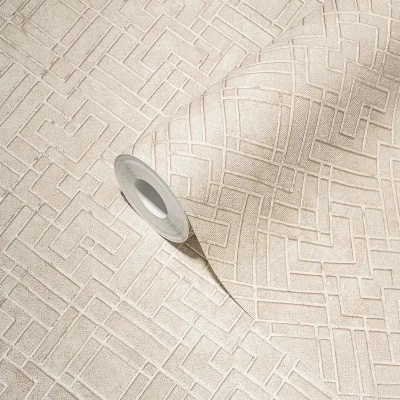 Papel pintado mosáico geométrico beige y crema, Ideal para dar un aire renovado y elegante a tus paredes. As Creation Metropolitan Stories 388282.