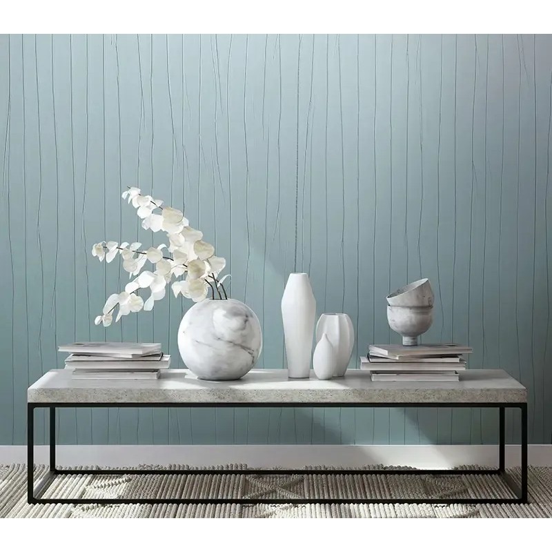 Papel pintado con pliegues metálicos gris azulado