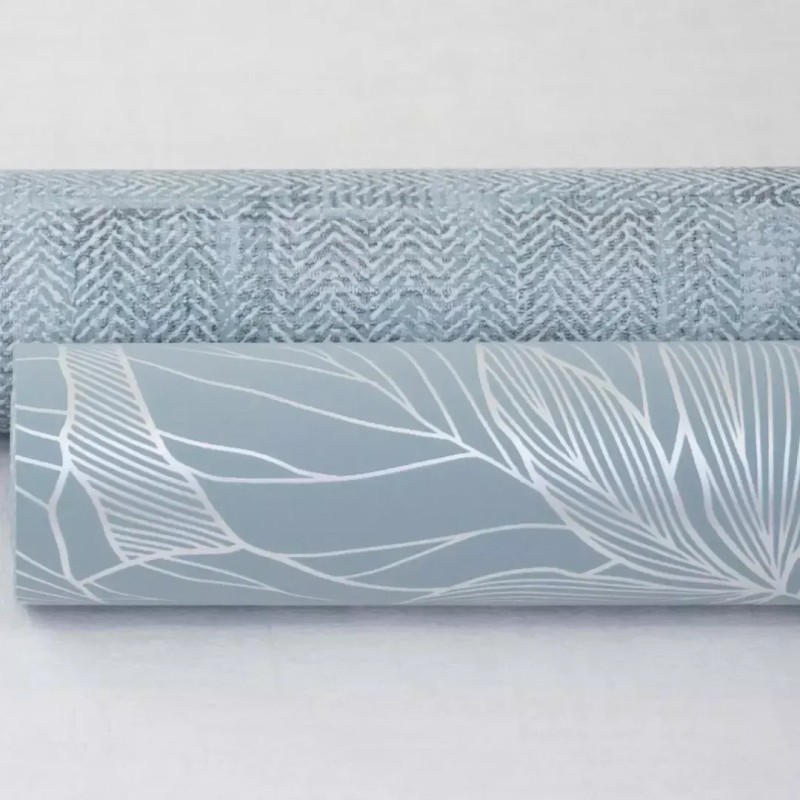 Este Papel pintado floral hojas grandes azul ideal baño con un diseño pensado para aportar profundidad, estilo y calidez a espacios como salones, dormitorios o entradas. Rasch Deco Style 314915.