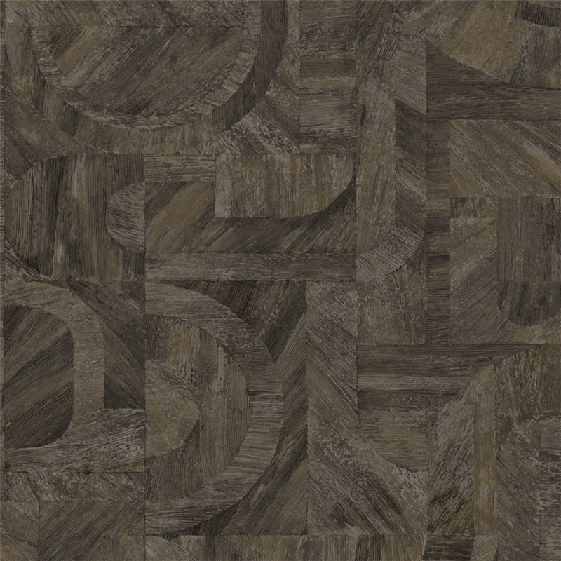 Papel pintado madera intarsia tonos oscuros de Casamance, colección Nature Sur Mesure. Calidad vinílico lavable, medidas: 70 cm x 10 m.