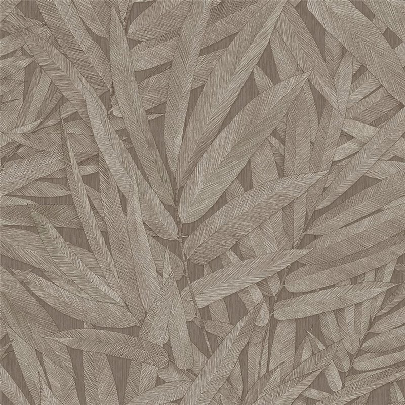 Este papel pintado de hojas estilizadas de palmera en marrón combina elegancia y naturaleza con un aire decorativo muy actual.