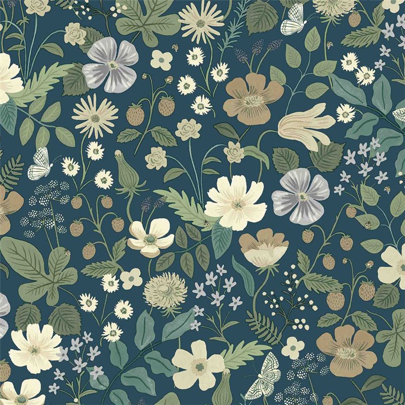 Papel pintado romántico flores del campo verde