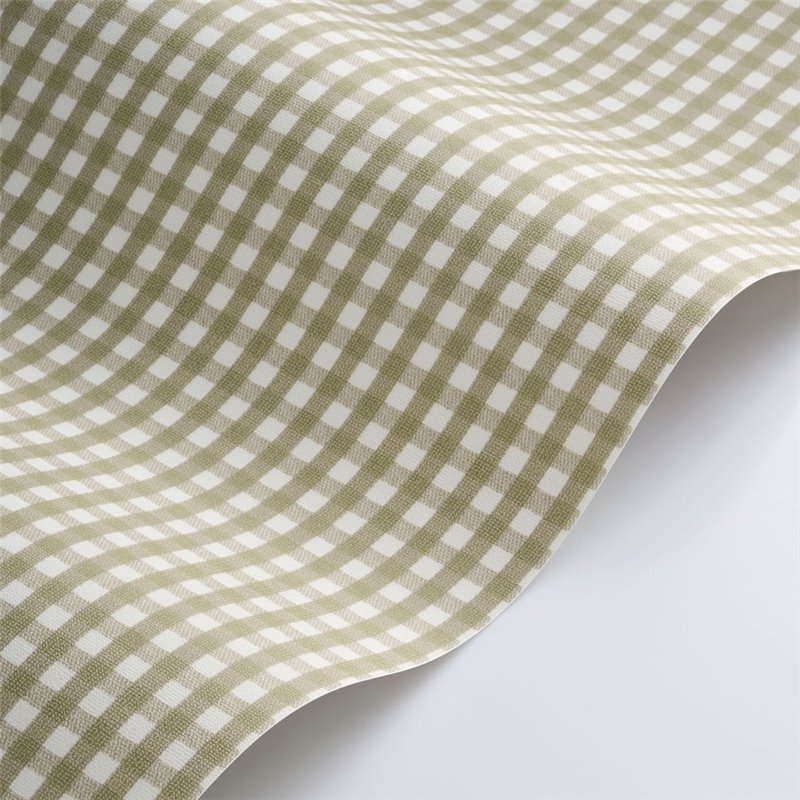 Con un diseño renovado, Gingham Charm reinterpreta con brillantez el estampado del papel pintado vichy. Aquí no hay tonos pastel, sino colores que podrían aparecer en un vestuario. Disponible en beige arena, verde tilo y camel sobre un fondo blanco luminoso.