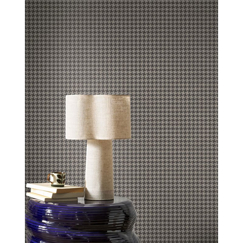 Elegante papel pintado con el tradicional estampado de pata de gallo. Su diseño encaja perfectamente en todas las estancias de la casa, Houndstooth destaca por su paleta de colores muy contemporánea: rosa empolvado, beige o tonos negros.